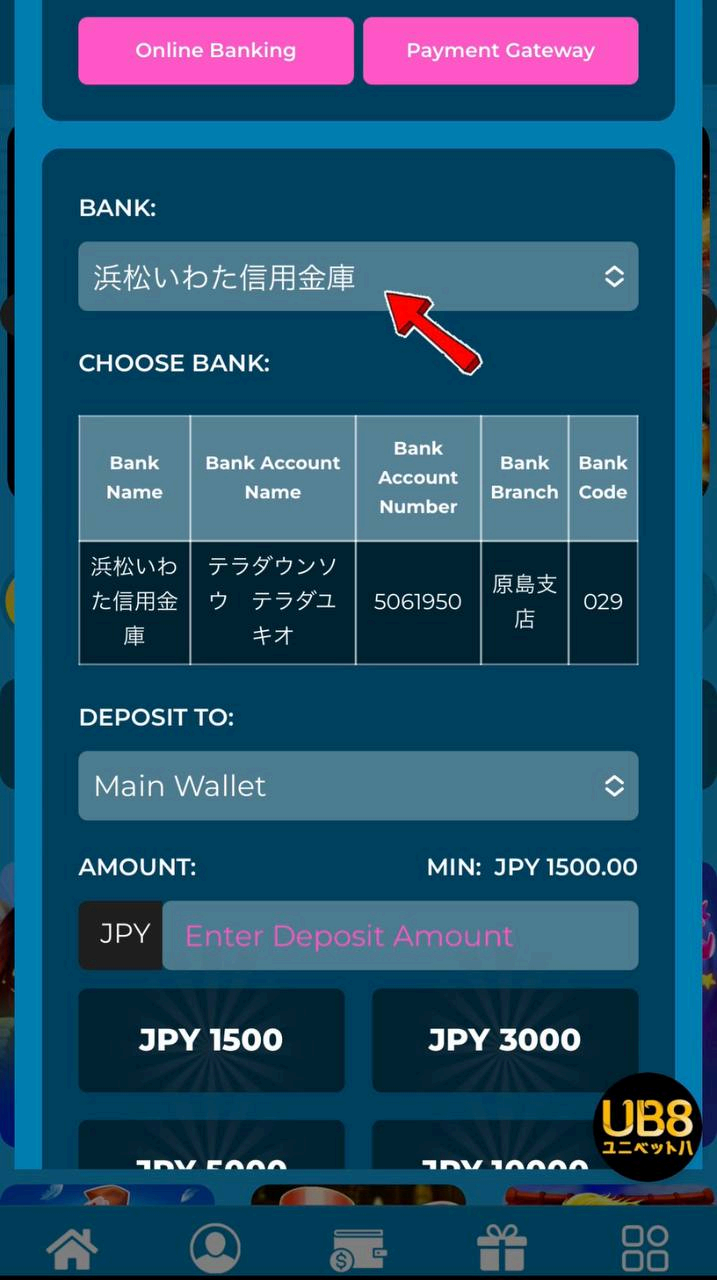 オンラインバンキングを選択した場合、銀行を選んでいただき、振込先の口座情報をお伝えします。